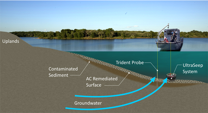 The Trident Probe and Ultra Seep System are two tools that were developed to directly assess the flux of COCs in groundwater discharging through sediment into the overlying surface water. These tools were demonstrated under ESTCP Project ER-200422 to be effective at locating areas where groundwater is discharging and being able to sample the discharge water for contaminants.